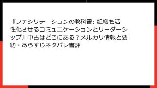 『ファシリテーションの教科書: 組織を活性化させるコミュニケーションとリーダーシップ』中古はどこにある?メルカリ情報と要約・あらすじネタバレ書評