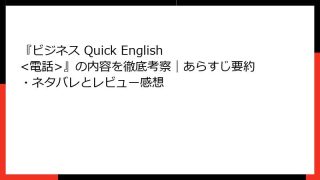 『ビジネス Quick English <電話>』の内容を徹底考察|あらすじ要約・ネタバレとレビュー感想