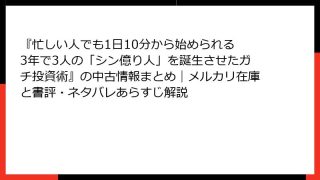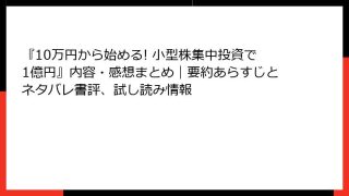 経営学・キャリア・MBA 『10万円から始める! 小型株集中投資で1億円』内容・感想まとめ|要約あらすじとネタバレ書評、試し読み情報