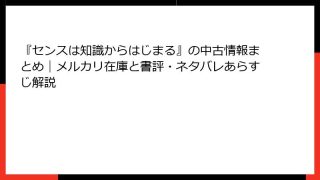 経営学・キャリア・MBA 『センスは知識からはじまる』の中古情報まとめ|メルカリ在庫と書評・ネタバレあらすじ解説