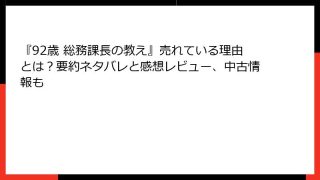 ビジネス実用 『92歳 総務課長の教え』売れている理由とは?要約ネタバレと感想レビュー、中古情報も