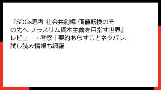 ビジネス実用 『SDGs思考 社会共創編 価値転換のその先へ プラスサム資本主義を目指す世界』レビュー・考察|要約あらすじとネタバレ、試し読み情報も網羅