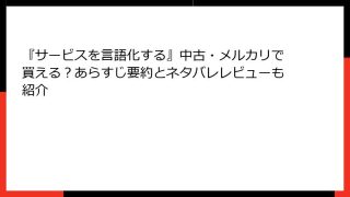 ビジネス実用 『サービスを言語化する』中古・メルカリで買える?あらすじ要約とネタバレレビューも紹介