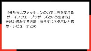 ビジネス実用 『僕たちはファッションの力で世界を変える ザ・イノウエ・ブラザーズという生き方』を試し読みする方法|あらすじネタバレと感想・レビューまとめ