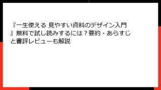 ビジネス実用 『一生使える 見やすい資料のデザイン入門』無料で試し読みするには?要約・あらすじと書評レビューも解説