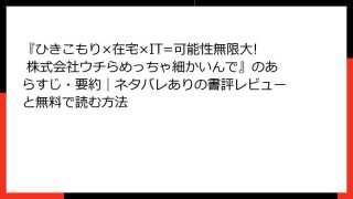 ビジネス実用 『ひきこもり×在宅×IT=可能性無限大! 株式会社ウチらめっちゃ細かいんで』のあらすじ・要約|ネタバレありの書評レビューと無料で読む方法