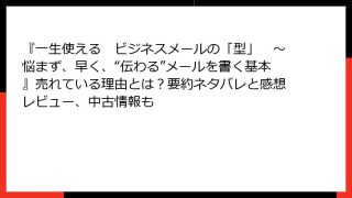 ビジネス実用 『一生使える ビジネスメールの「型」 ~悩まず、早く、“伝わる”メールを書く基本』売れている理由とは?要約ネタバレと感想レビュー、中古情報も