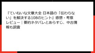 外資系マネージャーが教える端的に伝える技術:詳細要約とネタバレ満載の読み解き ビジネスシーンで「もっと端的に話して!」と言われた経験はありませんか? この書籍は、そんな悩みを抱える人に向けた、超実践的なガイドブックです。著者のアキヤマ・ダイ...
