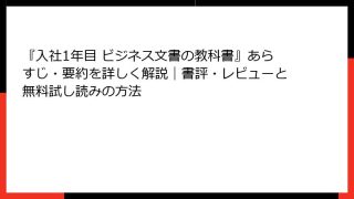 ビジネス実用 『入社1年目 ビジネス文書の教科書』あらすじ・要約を詳しく解説|書評・レビューと無料試し読みの方法
