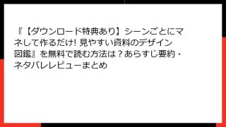 ビジネス実用 『【ダウンロード特典あり】シーンごとにマネして作るだけ! 見やすい資料のデザイン図鑑』を無料で読む方法は?あらすじ要約・ネタバレレビューまとめ