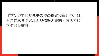 経営学・キャリア・MBA 『マンガでわかるテスタの株式投資』中古はどこにある?メルカリ情報と要約・あらすじネタバレ書評