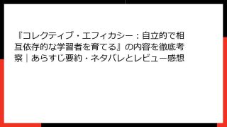 渋幕だけが知っている「勉強しなさい!」と言わなくても自分から学ぶ子どもになる3つの秘密のあらすじと詳しい要約 この書籍は、渋谷教育学園幕張中高(通称渋幕)の独自の教育メソッドを基に、子どもが自発的に学ぶようになるためのアプローチを解説したも...