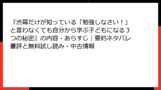 教育学 『渋幕だけが知っている「勉強しなさい!」と言わなくても自分から学ぶ子どもになる3つの秘密』の内容・あらすじ|要約ネタバレ書評と無料試し読み・中古情報