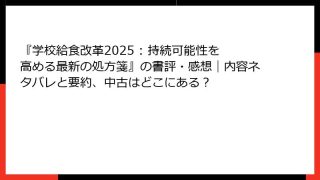 教育学 『学校給食改革2025 : 持続可能性を高める最新の処方箋』の書評・感想|内容ネタバレと要約、中古はどこにある?