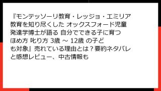 苦手が「できる」にかわる!発達が気になる子への生活動作の教え方 要約 この書籍は、発達が気になる子どもたちに対する生活動作の教え方をテーマにした実践的なガイドブックです。著者の鴨下賢一氏を中心に、子どもたちの苦手を「できる」に変える方法を詳...