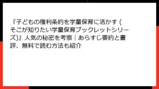 教育学 『子どもの権利条約を学童保育に活かす (そこが知りたい学童保育ブックレットシリーズ)』人気の秘密を考察|あらすじ要約と書評、無料で読む方法も紹介