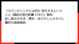 教育学 『カウンセリングとは何か 変化するということ (講談社現代新書 2787)』無料試し読みの方法|要約・あらすじとネタバレ書評も徹底解説
