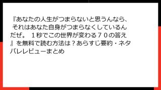 『とらわれない。ゆるがない 人生を豊かにする「菜根譚」の言葉』詳しい要約とネタバレありの解説 本書の概要と背景 この書籍は、中国明時代の古典『菜根譚』(洪自誠著)を基に、中国古典の第一人者である守屋洋氏が現代人のために選りすぐりの言葉を現代...
