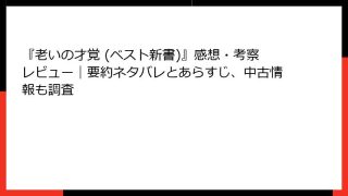 老いてこそ人生:石原慎太郎の老いへの正面突破 石原慎太郎のエッセイ『老いてこそ人生』は、老いの必然性を正面から見据え、くよくよと怯えることなく受け止める姿勢を鮮やかに描いた一冊だ。著者自身が70代後半という年齢で執筆したこの本は、単なる老後...
