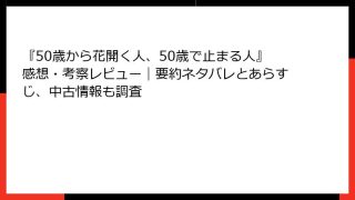 倫理学・道徳 『50歳から花開く人、50歳で止まる人』感想・考察レビュー|要約ネタバレとあらすじ、中古情報も調査