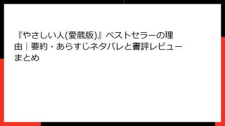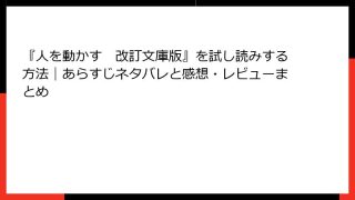 人を動かす:デール・カーネギーの人間関係術の詳細な要約とネタバレ デール・カーネギーの『人を動かす』は、1936年に初版が発行されて以来、世界中で読まれ続けている人間関係のバイブルです。この書籍は、ビジネスや日常の人間関係で人を動かすための...