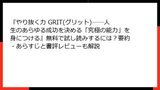 倫理学・道徳 『やり抜く力 GRIT(グリット)――人生のあらゆる成功を決める「究極の能力」を身につける』無料で試し読みするには?要約・あらすじと書評レビューも解説