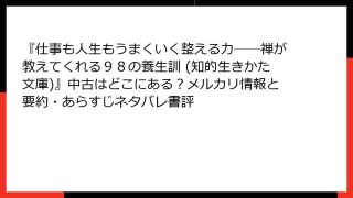 倫理学・道徳 『仕事も人生もうまくいく整える力――禅が教えてくれる98の養生訓 (知的生きかた文庫)』中古はどこにある?メルカリ情報と要約・あらすじネタバレ書評