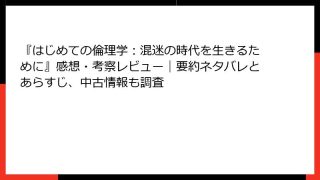 倫理学・道徳 『はじめての倫理学:混迷の時代を生きるために』感想・考察レビュー|要約ネタバレとあらすじ、中古情報も調査