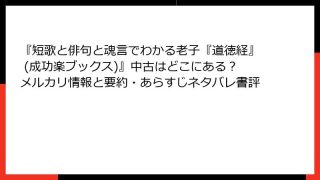 倫理学・道徳 『短歌と俳句と魂言でわかる老子『道徳経』 (成功楽ブックス)』中古はどこにある?メルカリ情報と要約・あらすじネタバレ書評