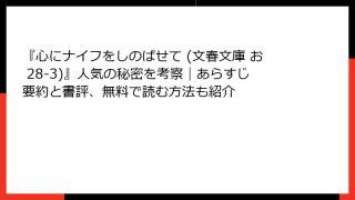 倫理学・道徳 『心にナイフをしのばせて (文春文庫 お 28-3)』人気の秘密を考察|あらすじ要約と書評、無料で読む方法も紹介