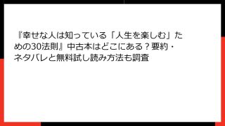 倫理学・道徳 『幸せな人は知っている「人生を楽しむ」ための30法則』中古本はどこにある?要約・ネタバレと無料試し読み方法も調査
