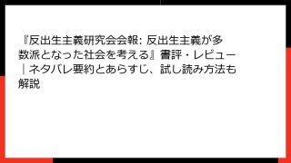倫理学・道徳 『反出生主義研究会会報: 反出生主義が多数派となった社会を考える』書評・レビュー|ネタバレ要約とあらすじ、試し読み方法も解説