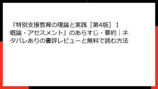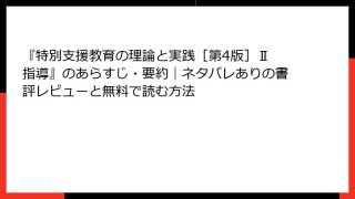 心理学 『特別支援教育の理論と実践[第4版]Ⅱ 指導』のあらすじ・要約|ネタバレありの書評レビューと無料で読む方法
