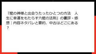心理学 『龍の神様と出会うたったひとつの方法 人生に幸運をもたらす六龍の法則』の書評・感想|内容ネタバレと要約、中古はどこにある?