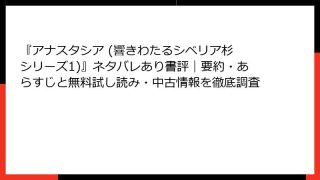 心理学 『アナスタシア (響きわたるシベリア杉 シリーズ1)』ネタバレあり書評|要約・あらすじと無料試し読み・中古情報を徹底調査