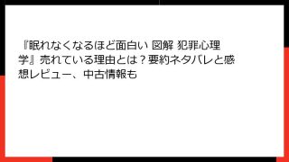 心理学 『眠れなくなるほど面白い 図解 犯罪心理学』売れている理由とは?要約ネタバレと感想レビュー、中古情報も