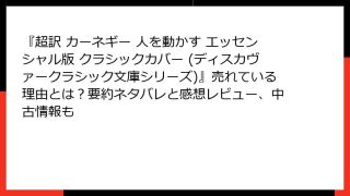 心理学 『超訳 カーネギー 人を動かす エッセンシャル版 クラシックカバー (ディスカヴァークラシック文庫シリーズ)』売れている理由とは?要約ネタバレと感想レビュー、中古情報も