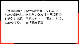 心理学 『宇宙兄弟とFFS理論が教えてくれる あなたの知らないあなたの強み【自己診断ID付き】』感想・考察レビュー|要約ネタバレとあらすじ、中古情報も調査