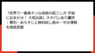 心理学 『世界で一番楽チンな奇跡の起こし方 宇宙におまかせ! 大和出版』ネタバレあり書評|要約・あらすじと無料試し読み・中古情報を徹底調査