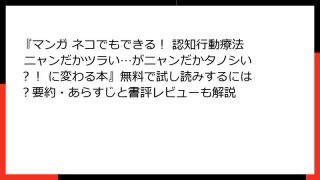 心理学 『マンガ ネコでもできる! 認知行動療法 ニャンだかツラい…がニャンだかタノシい?! に変わる本』無料で試し読みするには?要約・あらすじと書評レビューも解説