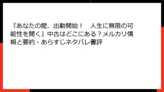 『あなたの龍、出動開始! 人生に無限の可能性を開く』詳しいあらすじとネタバレ満載の要約 書籍の全体像とテーマ 長南華香さんのこの本は、スピリチュアルな自己啓発書でありながら、非常に実践的で読みやすい内容になっています。マンガ(ま~めさん担当...