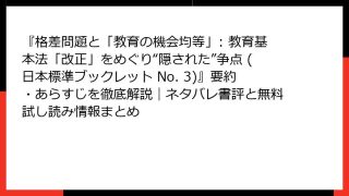 自閉スペクトラム症の女の子が出会う世界:あらすじと詳細な要約 書籍の概要とテーマ この書籍は、自閉スペクトラム症(ASD)を抱える女性と少女の生涯にわたる経験を、研究データと個人ストーリーを交えて描いたものです。著者のサラ・ヘンドリックスは...