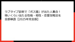ラブタイプ診断 ラブタイプ診断で「ボス猫」が出た人集合!怖いくらい当たる性格・相性・恋愛攻略法を全部暴露【2025年完全版】