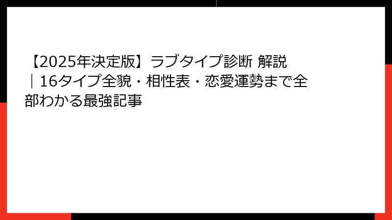 - 【2025年最新】ラブタイプ診断とは?たった3分で「あなたの恋愛の本質」が丸裸になる超本格心理テスト