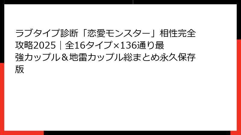 ラブタイプ診断「恋愛モンスター」相性完全攻略2025|全16タイプ×136通り最強カップル&地雷カップル総まとめ永久保存版