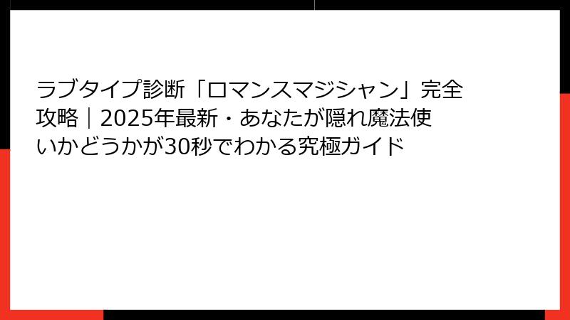 この記事では、2025年最新版のラブタイプ診断16種類のうち、特に注目度No.1と言っても過言ではないロマンスマジシャンを徹底的に深掘りします。