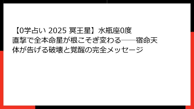 つまり、2025年は「水瓶座冥王星時代」の本当の幕開けであり、0学占いにおいて最も重要な“宿命の天体”が、私たち全員の人生を根こそぎ揺さぶりにくる年なのです。
