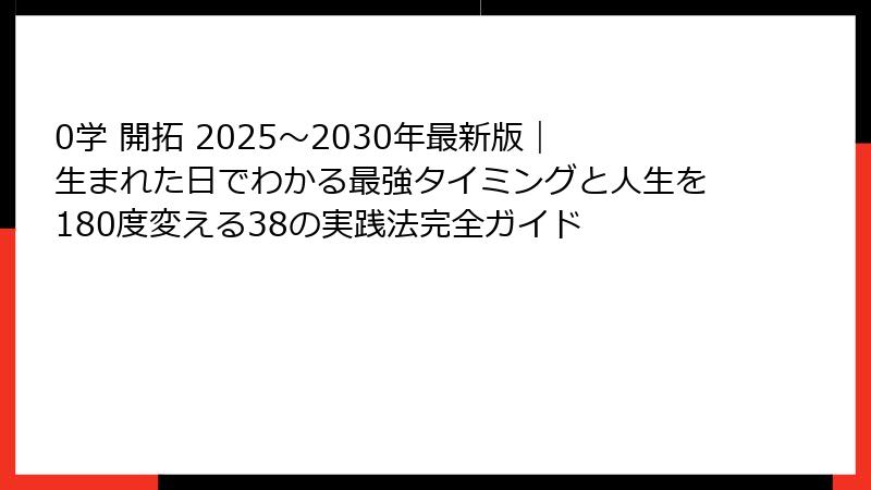 0学 開拓 2025〜2030年最新版|生まれた日でわかる最強タイミングと人生を180度変える38の実践法完全ガイド