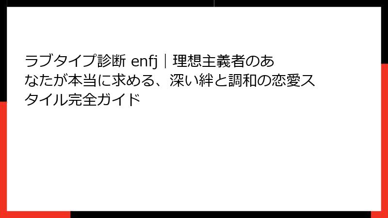 このセクションでは、ENFJの性格を多角的に分析し、ラブタイプ診断 enfjの文脈で恋愛へのつながりを探ります。