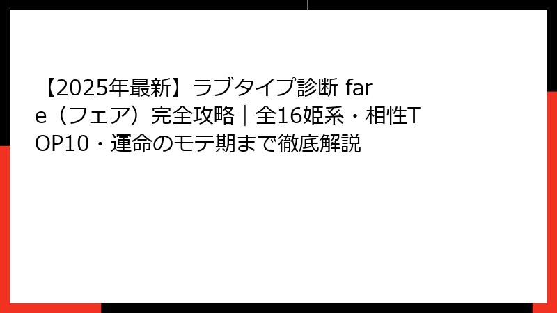 【2025年最新】ラブタイプ診断 fare(フェア)完全攻略|全16姫系・相性TOP10・運命のモテ期まで徹底解説